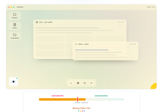 iBlink spårar hur ofta du blinkar och varnar försiktigt när din hastighet sjunker under hälsosamma nivåer. All bearbetning sker lokalt på din enhet, vilket innebär att ingen video spelas in eller skickas online. En snabb kalibrering anpassar systemet till belysning och ögonform för bättre noggrannhet. Men det kräver kontinuerlig webbkameratillgång, vilket kan kännas obekvämt för vissa användare.