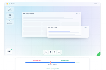 Denna app fokuserar på att bygga vanor snarare än störande varningar. Dess intelligenta puffar tränar dig att blinka mer naturligt över tid, vilket förbättrar komfort och fokus under arbetsdagen. Gränssnittet är minimalt och körs tyst i bakgrunden, vilket gör det lämpligt för utvecklare, författare och distansarbetande yrkesverksamma.